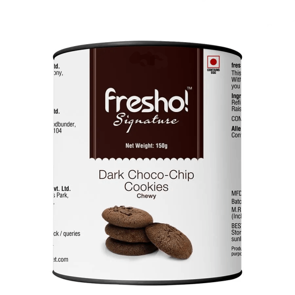 • Fresho Signature presents brown coloured cookies that are made to satisfy your chocolate cravings. They are filled with Dark Choco chips so that you can’t miss the bite! These cookies are crunchy and deep in texture and taste. Its dense feel in the mouth will surely want to have more than one at a time. They are best with the evening snacks and tea/coffee or milk.